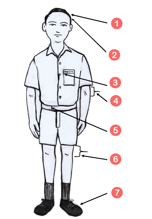 • පාසල් ලාංඡනය කමිසයේ වම් පස සාක්කුවේ කෙලවර පැලදිය යුතුය.